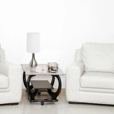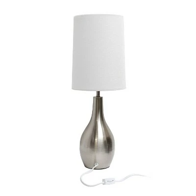 Simple yet sleek, this table lamp will add the perfect touch of style to your home. With a smooth and traditional shaped base in Silver (brushed nickel), this lamp offers a polished feel to top off your accent table, night stand, living room, bedroom or office! Paired up with a white fabric drum shade, this is the perfect fit for your home decorating needs.