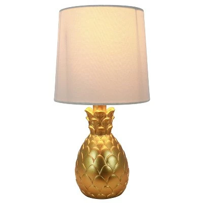This pineapple lamp perfectly matches those whose sense of style is fun and whimsical, yet retains a sense of sophistication. Crafted of resin, the bulbous tropical fruit shaped base adds rich texture to your table top while lending modern monochromatic appeal to any space. Topped with a hardback drum shade.