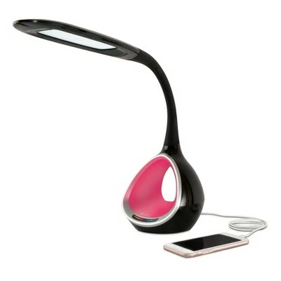 Color your world with the OttLite LED Desk Lamp with Color Changing Tunnel. The base has a unique color tunnel that glows either in the color of your choice or cycles through the entire color spectrum. This touch lamp offers 3 color temperatures (daylight, cool and warm light) and 5 brightness settings. The diffuser provides smooth, uniform lighting. A flexible rubberized neck and long 9.5 inch shade provides OttLite Natural Daylight LED Illumination wherever you need it. And the 5V, 2.1A built-in USB port fully charges smartphones and tablets. Great for dorm rooms, bedrooms, offices or anywhere you’d like a lamp with personality. With OttLite’s high contrast natural daylight illumination, you can see details clearly and reduce glare and eyestrain so you can do what you love, longer. Works Great as aTask lamp or Desk Lamp .