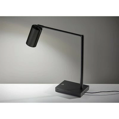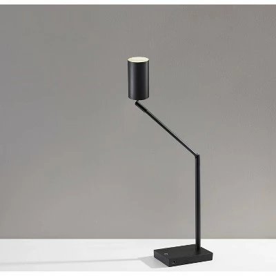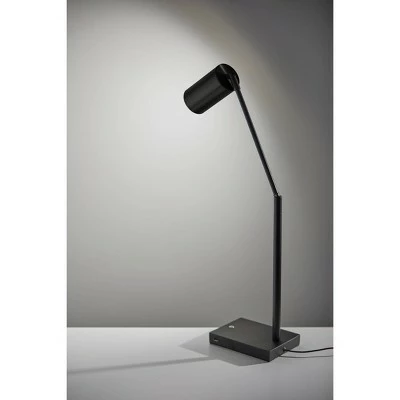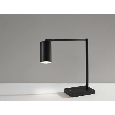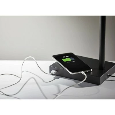 A minimalist, modern style, the Colby LED Desk Lamp is made up of thin, sharp lines and matte black metals. Adjustable at the arm and shade joints, this lamp is perfect for the desk to illuminate all areas of the workspace. A 9 Watt integrated LED provides 3 different light settings to suit all needs, easily adjusted by a simple touch switch. A USB port is located on the side of the base, allowing for easy charging capabilities.