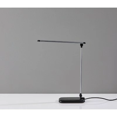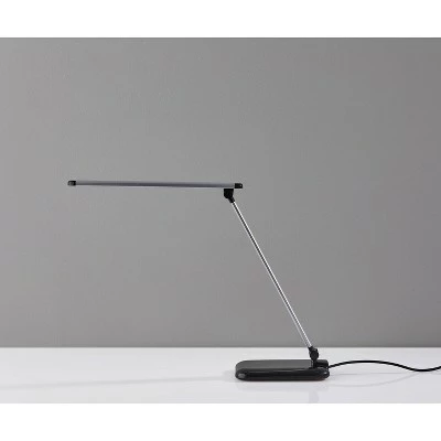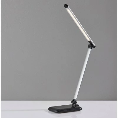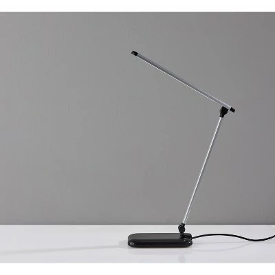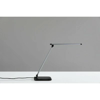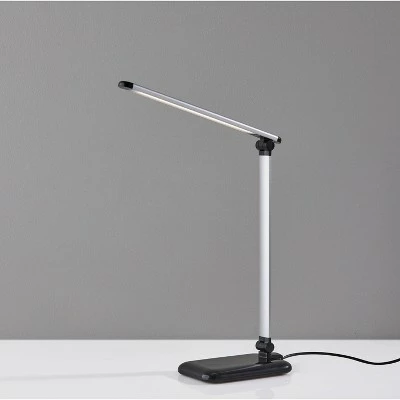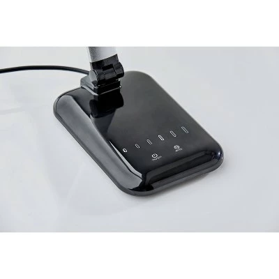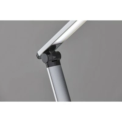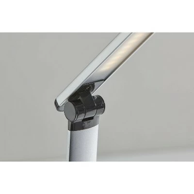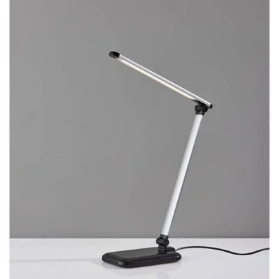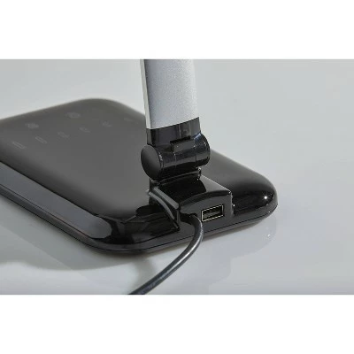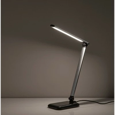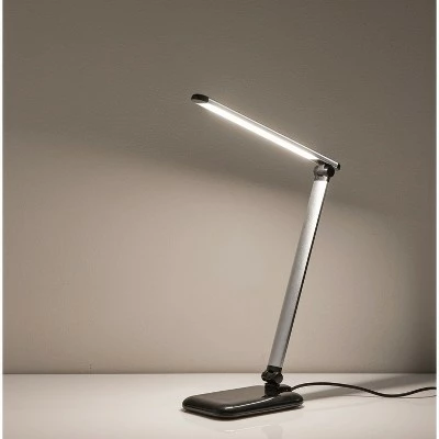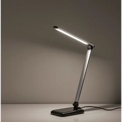 This high powered, high-tech, modern desk lamp is the perfect solution to any workspace. Complete control of the light intensity and color allows you to customize the light to your needs at any time of the day. Whether you are working, reading or relaxing, the 5 light color temperature modes provide you with various options to suit your environment and mood. Adjust the light intensity with a simple touch dimmer switch offering 5 different brightness options. A convenient USB charging port located in the base lets you charge up your devices while you work. An adjustable arm with joints at the base and mid-point allows for 400 lumens of flicker free, energy efficient LED light to reach any area of the workspace. A sleek, modern silhouette finished in silver and black offers added sophistication.
