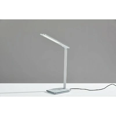 Take your home office to the next level with the Declan LED Wireless Charging Multi-Function desk lamp! With 800 lumens of customizable, flicker free, high powered light, this lamp wil suit all of your needs at every time of the day. A sleek touch switch on the base adjusts the light between 3 different color tempertature modes and 5 different brightness settings. Whether you need a warm, dim night light for reading before bed or bright, white light to wake you up while you work during the day, this lamp has you covered! A sophisticated glossy white finish will add a modern touch to your home or office. In addition, a Qi certified wireless charging pad is conveniently located inside of the base. Many smartphones (list below) have Qi technology built in, so just place your phone on the pad and it will charge right up. No cords, no mess. It’s that easy! All AdessoCharge product is Qi certified by the Wireless Power Consortium. Please visit https://www.wirelesspowerconsortium.com/products/search/ to see a list of Qi certified products. Our product has been tested and verified to be safe and in compliance with the Qi standard. The AdessoCharge pad supports 5W charging on contact with the charging pad, which gets your phone from 0% to 100% in just 3-4 hours, depending on your phone model. A USB is located on the base and can charge up a second device simultaneously.
