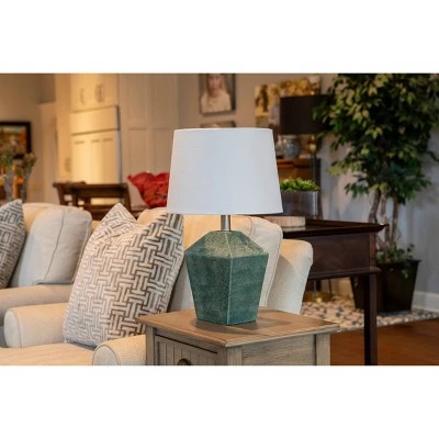 A simply stylish accent piece that always shines, the Carrol table lamp is the perfect display of chic, minimalistic design. Geometric lines define the silhouette of the base, while the glazed finish softens the look. A modern round linen shade enhances the look and lends a tailored feel. Measures 12x12x19.5″