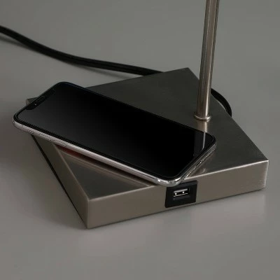 Modern Ashton Square Table lamp feature a Wireless Charging Pad with Qi Technology and a USB port for convenient charging. With Qi integrated into many smartphones, charging is easier than ever—no charging blocks or cords required. Design a workspace or reading nook that’s primed for productivity, you can charge up without cords or clutter. An elegant & practical solution: This lamp does not have the glare of overhead lights or exposed bulbs as its neutral linen shade softens the light giving your room a warm ambient glow. The unique modern style and size of this lamp makes it the perfect bedside table, office lamp, or living room side table lamp. Contemporary design and features a metal construction with a top w/ a Blue Green Textured Square Drum shade. Convenient Pull Chain: With the stylish pull chain, you can turn ON/OFF with the pull chain. No need to find the switch on the cord when you are going to sleep. Super convenient for your bedroom. The charging port and pad function regardless of whether the lamp is on or off. Add this table lamps to your bedroom, office or living room for a dash of delightful symmetry and visual allure.