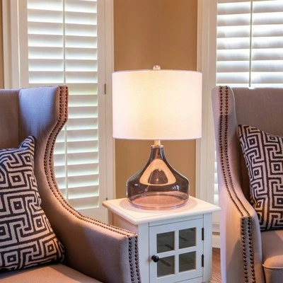 Bring a room to life by adding light and style with our mid-century inspired Translucent Glass Table Lamp. Simple lines, combined with the transparent luster glass base, create an airy look. Completing the design is a natural linen shade which lends a casual feel. The Luster finish adds a subtle touch of color and elegance to your entryway table, side table or night stand. Requires one (1) 100 watt bulb, not included. Measures 14x14x22″