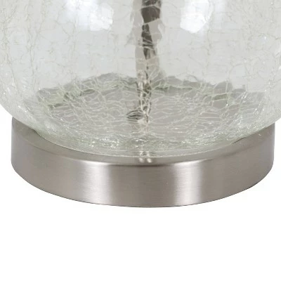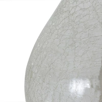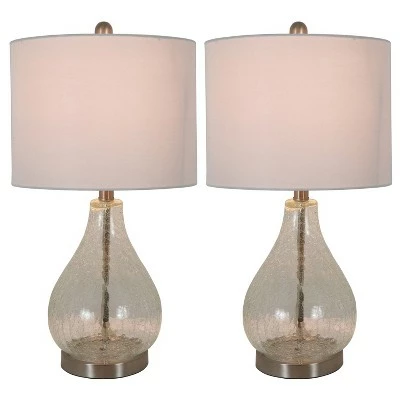 Add symmetric lighting to any small or large area with this set of two large table lamps. On each lamp, the transparent, gourd-shaped glass base is finished with a crackle effect, lending textural visual interest that elevates the neutral tone. Metal hardware appears throughout each lamp to compliment your contemporary fixtures. Finally, a large drum shade in crisp linen finishes the look.