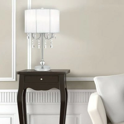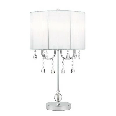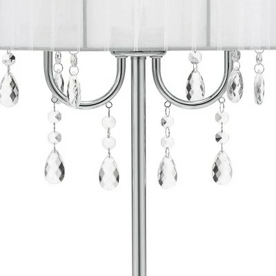 Unmistakable. Contemporary. Brilliance. A mixture of crystal and metal with a chrome finish base, the Chrome Chandelier Table Lamp invites attention to your residence or office. Dazzling acrylic crystals hang beneath a clean, white round shade, mounted with a harp and finial. Designed to deliver ambience, the Chrome Chandelier Table Lamp is a perfect transitional piece. Look for its matching floor lamp to create a complete aesthetic. Updating the light fixtures in your home is the most effective way to accomplish an alluring, yet simple, DIY remodel. Producing captivating fixtures for nearly five decades, Catalina Lighting extends a 1-year limited warranty against defects in materials and workmanship.