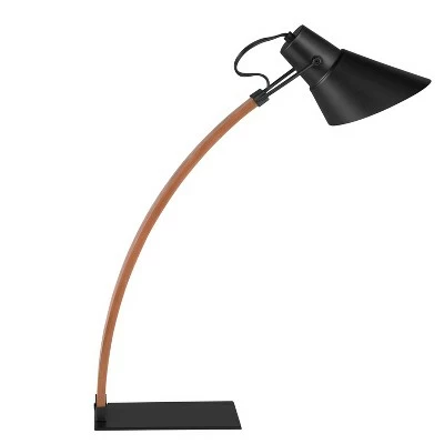 Get work done with the LumiSource Noah Lamp. Ultra sleek, the arched wood neck is complimented by a stylish black shade and sturdy base, providing a retro vibe with modern appeal. Ideal for a desk or office space, the Noah Lamp has an adjustask shade, allowing you to control where the light shines. The versatile design be used as a desk or task lamp.