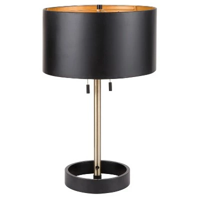 Chic, bold, and classy, that’s the Hilton Table Lamp from LumiSource. This art decco inspired lamp is sure to brighten up any room. Showcasing a sleek metal shade, two hanging pull chains, and a luxurious gold finish all on top of a sturdy black base. This lamp will add a look of luxury to any space.