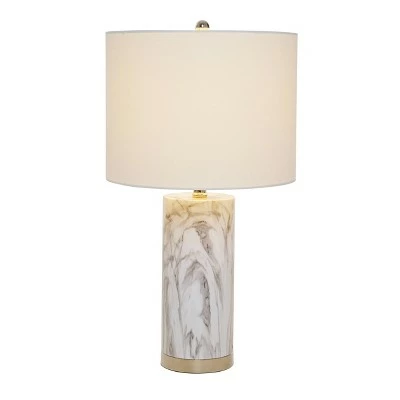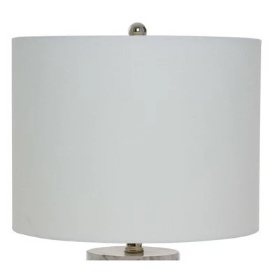 This modern table lamp features a metal body with a faux marble finish and polished nickel metal accents. A white linen shade with matching harp and finial complete the look. The versatile design makes it the perfect addition to your living room, family room, bedroom, dorm room, home office, craft room, kitchen or any open concept living space. Great for apartment living or DIY home remodeling projects and suits a variety of styles including modern, transitional, contemporary, industrial, global, farmhouse, rustic and traditional decor.