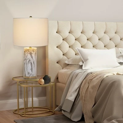 - STYLISH AND ELEGANT: This modern table lamp features a metal body with a faux marble finish and polished nickel metal accents. A white linen shade with matching harp and finial complete the look. The versatile design makes it the perfect addition to your living room, family room, bedroom, dorm room, home office, craft room, kitchen or any open concept living space. Great for apartment living or DIY home remodeling projects and suits a variety of styles including modern, transitional, contemporary, industrial, global, farmhouse, rustic and traditional decor.