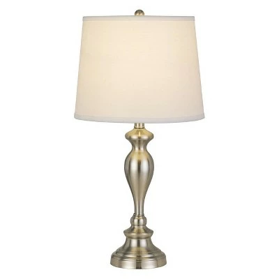 Cal Lighting makes this pair of Transitional styled 100W Metal table lamps with taper drum hardback linen shade The Brushed Steel metal finish and Off-White shade look great together. This pair of lamps will be a great addition to your living room, family room, office or bedroom. These lamps use an On/Off socket switch. The bulbs are not included. These lamps and shades ship in one carton.