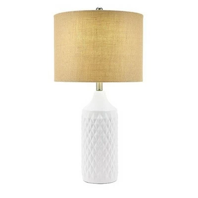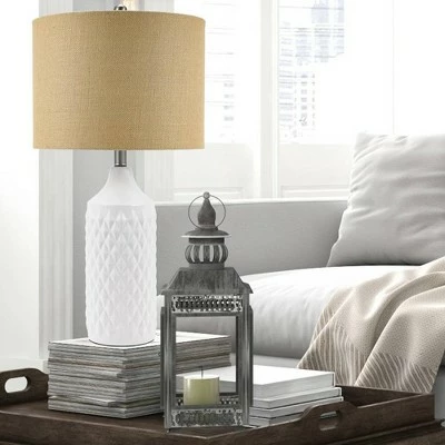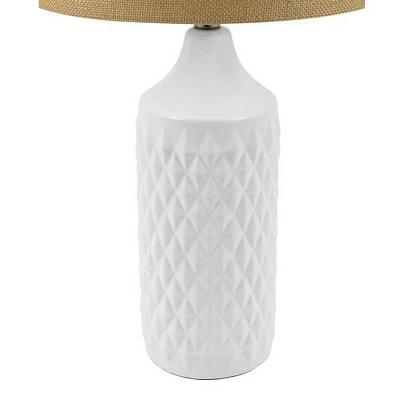 - ELEGANT AND STYLISH: This unique ceramic table lamp features a textured quilted patterned body with white finish and burlap shade. This attractive light is the perfect addition to your living room, bedroom, family room, dorm room, home office, craft room, kitchen or any open concept living space. Great for apartment living or DIY home remodeling projects and suits a variety of styles including transitional, coastal, modern, contemporary, global and traditional decor.