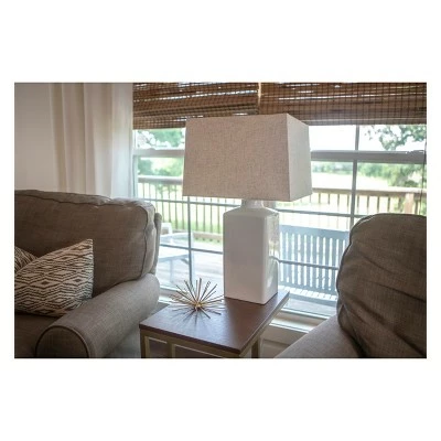 - White rectangular lampshade pairs perfectly with the clean lines of the base for chic appeal