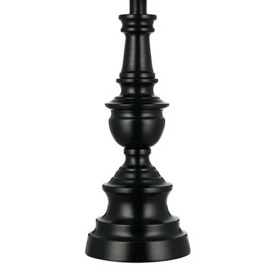 This classic table lamp showcases tradition at its best with a black finish and turned decorative fonts on the lamp body. The taupe hardback shade adds refinement to this timeless design. Try pairing them next to your bedside or favorite sofa to bring together a cohesive look.