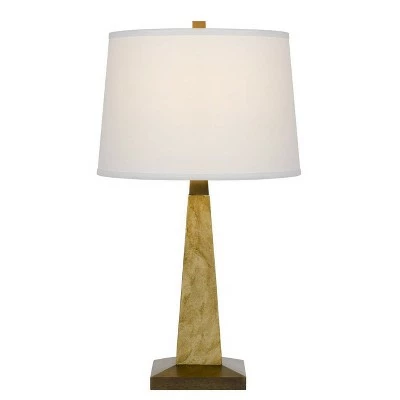 Cal Lighting’s resin Contemporary table lamp in Sand Stone marble look finish with brown base. The Off-White hardback linen taper drum shade is included looks great with the pyramid design and brown base. This table lamp uses one 150 Watt 3-way bulb (not included). Add this Transitional styled lamp to your Livingroom, dining room, family room, bedroom, or office. The base is weighted for increased balance.