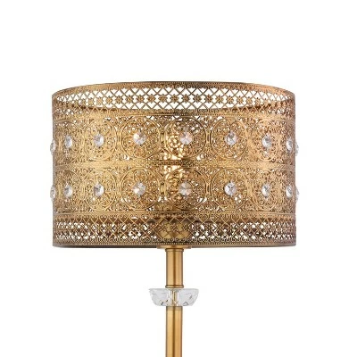 - Ornate brass shade design studded with faceted crystals for added sparkle