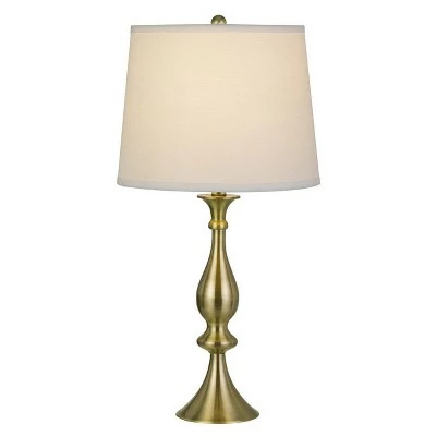 Cal Lighting makes this pair of Transitional styled 100W Metal table lamps with taper drum hardback linen shade The Antique Brass finish creates a great look combined with the Off-White shade. This pair of lamps will be a great addition to your living room, family room, office or bedroom. These lamps use an On/Off socket switch. The bulbs are not included. These lamps and shades ship in one carton.