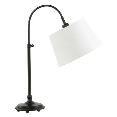 Brighten up your living space with the elegant appeal of the Adjustable Metal Table Lamp from Fangio Lighting. The body is made of sturdy metal with an oil rubbed bronze finish that gives it an antique feel, while the linen shade casts the ideal wash of warm light. An eye-catching accessory for a desk or table, this 28″ tall Lamp sharpens the decor of any room in your home or office. Requires 100W incandescent bulb (sold separately).
