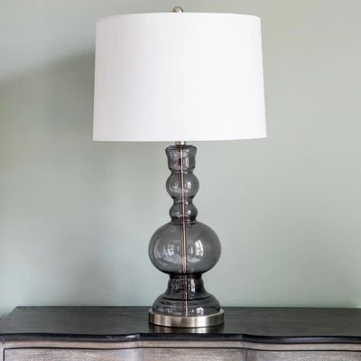 Make a dramatic style statement while illuminating your bedside table, entryway or family room with the stunning Sadie Sculpted Glass Table Lamp. The sculpted glass adds dimension to your side table, while the finish adds an eye catching glimmer. The modern silhouette of the round drum shade and rich texture of the linen material completes the look. Requires one (1) 150 watt bulb, not included.