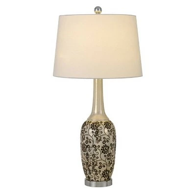 Cal Lighting makes this is pair of Traditional styled 150W 3-Way Ceramic table lamps with taper drum hardback linen shade The durable ceramic construction and Leaf design in Pearl and Black finish look great with the metal base. This will be a great addition to your living room, family room, office or bedroom. The bulbs are not included. These lamps and shades ship in one carton.