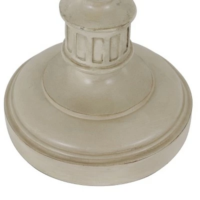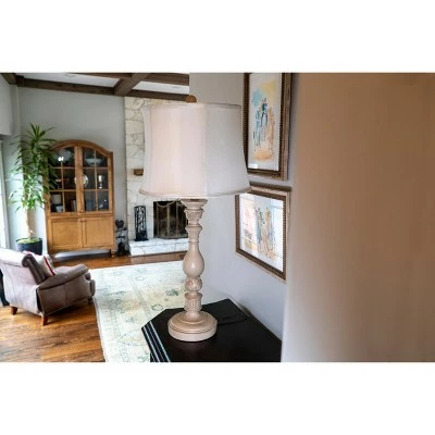 Traditional styles do not have to be mundane when adding the Dora Distressed Resin Table Lamp to your décor! The neutral finish of this lamp gives off a sophisticated vibe, coupled with the softback lamp shade. Sitting atop a marble or dark wood tabletop, the traditional style instantly becomes a beautiful addition. Not to mention, the 30″ height of this piece will hover above your furnishings, pronouncing its ability to stand out and embellish effortlessly. Let this lamp grace your space today! Constructed of resin and measures: 30 x 14 x 14″.
