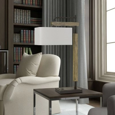Cal Lighting makes this 32″ tall metal and wood desk lamp with rectangular linen shade. 100W Rocker Base Switch. (Bulb is not included.) The metal is in Dark Bronze finish which compliments the light wood finish and the off-white shade. This lamp will look great in your Living Room, Bedroom, Office, or Dining Room. The matching floor lamp is also available. (Sold separately)