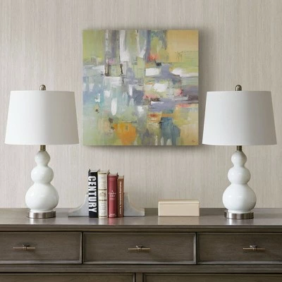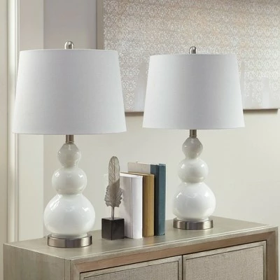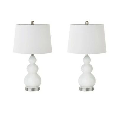 Enhance your space with the Covey Table Lamp Set of 2. The beautiful white glass and silver metal base is complemented by white tapered drum shape shade that adds the right touch to the design. Place this table lamp in your living room or bedroom to complete your home decor. One Type A bulb is needed.