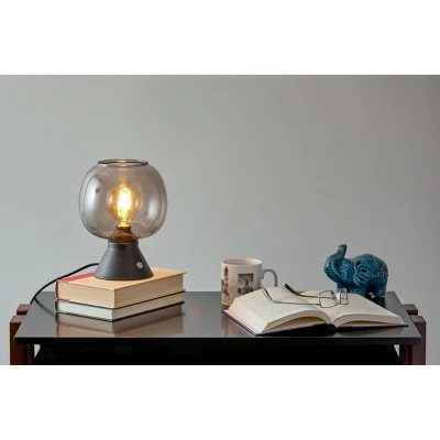 Set the mood with the Ashton Table Lantern. Included with this purchase, is a vintage style edison bulb with a unique globe shape that mirrors the shape of a beautiful smoked glass shade. A matte black metal finish and a black fabric covered cord adds contemporary edge. With an accent size silhouette, this lantern is perfect for many areas of the home whether it is glamming up a bookshelf or adding industrial edge to an entryway. Turn the lamp on and off with the ease of a touch switch.
