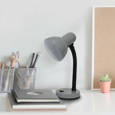 A nice, low-cost, and functional desk lamp to meet your basic lighting needs. This desk lamp features a painted plastic base and metal shade, flexible hose neck, and ON/OFF switch located on the base for your convenience. Perfect for office, kids room, or college dorm! Make sure to check out the additional color/finish options for this item!