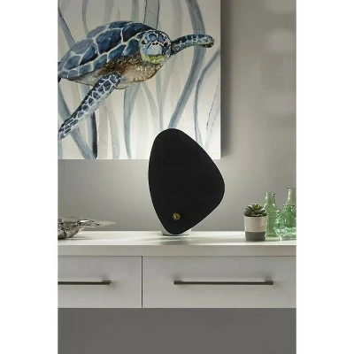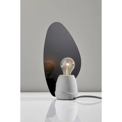 Add a surprising and unique accent to your console table, bookshelf or bedside with the Bonnie Table Lantern. An irregular shaped black metal shade is set atop a natural concrete base. This lamp sits in front of the wall to reflect the light for a soft, ambient glow. Turn the lamp on and off with an industrial brass metal switch. A black and white fabric cord adds modern flare to the design. Bulb is not included.