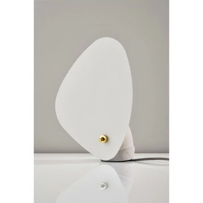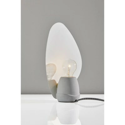 Add a surprising and unique accent to your console table, bookshelf or bedside with the Bonnie Table Lantern. An irregular shaped white metal shade is set atop a natural concrete base. This lamp sits in front of the wall to reflect the light for a soft, ambient glow. Turn the lamp on and off with an industrial brass metal switch. A black and white fabric cord adds modern flare to the design. Bulb is not included.