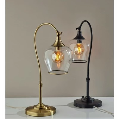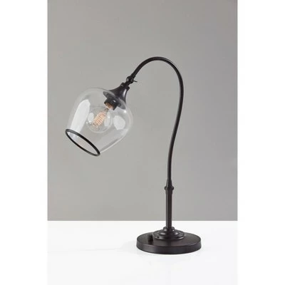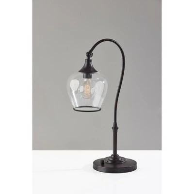Add an eye-catching design piece to your bedroom or living space with the Bradford desk lamp. With warm light shining through a clear tulip-shaped glass shade, this lamp creates a look that is as aesthetic as it is functional. The 23.25” tall lamp features an 8.25” diameter round base and curved stem with a dark bronze finish, and a matching metal rim accenting the glass shade, making it the perfect solution to provide lighting and vintage dĂ©cor to any space. Completing the vintage look is an included 40W Edison bulb. For versatile lighting options, the base of the shade is adjustable, allowing you to pivot the shade up or down to direct the light wherever it’s needed. This desk lamp is operated by a rotary switch on the base to easily turn it on or off. Complete your space’s look with the coordinating Bradford pendant lighting, wall lamp, and floor lamp.