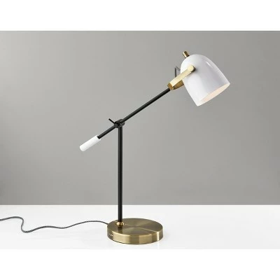 With a built in USB port, the Casey Desk Lamp is practical choice to stay connected in any room. A mix of black, white and antique brass metals creates a unique, color blocked style that adds a modern touch to your space. An adjustable shade and arm allows for maximum efficiency and convenience. The power cord is wrapped with black and white fabric turning a technical detail into a design enhancement. Bulb is not included.
