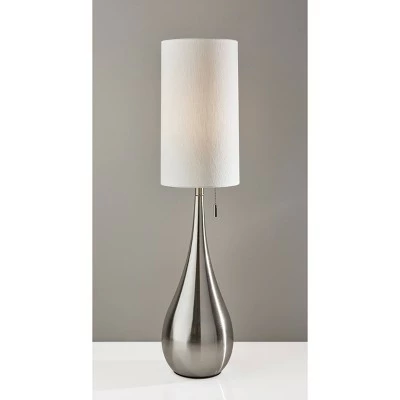 Featuring a sleek, teardrop shaped silhouette, the Christina Table Lamp exudes elegance and contemporary style with its slim profile and minimalist focus. A tall, thin drum shade is made with a textured white fabric, softening the look. This stately table lamp stands 34.5″ high making a strong presence in a room. Turn the lamp on and off with a simple pull chain switch. Bulb is not included.