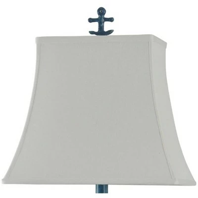 A nautical favorite for the modern home, the Cogra Bay table lamp combines a seaside motif and rustic style blue finish to create a unique look. It’s made with a squared polyresin body that features an anchor finial in a matching color tone. This lamp is brought together with a squared and tapered white softback fabric shade. Draw attention to your home dĂ©cor with this Cogra Bay Table Lamp Blue from the Signature Collection by StyleCraft Home Collection. The lamp has an anchor finial that compliments the anchor motif on the front of the lamp base with rope detailing. This piece exemplifies superior product design and great styling. This will pair well with nautical styling and is sure to be a conversation piece. Regardless if you put it in the bedroom or family room, this lamp stands out. Suitable for residential use in a dry location. This table lamp is UL listed in compliance with the nationally recognized safety standards.
