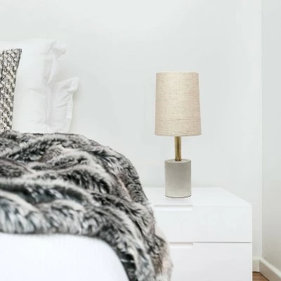 Bring a modern and industrial touch to any room in your home while keeping it simple! The cement base is beautifully accented by antique brass for a hint of elegance, complimented by a white fabric shade. This is the perfect size lamp for your night stand, end table or office desk!