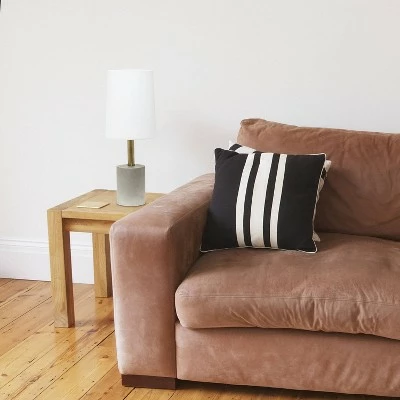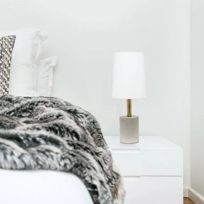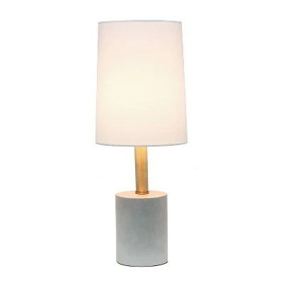 Bring a modern and industrial touch to any room in your home while keeping it simple! The cement base is beautifully accented by antique brass for a hint of elegance, complimented by a white fabric shade. This is the perfect size lamp for your night stand, end table or office desk!