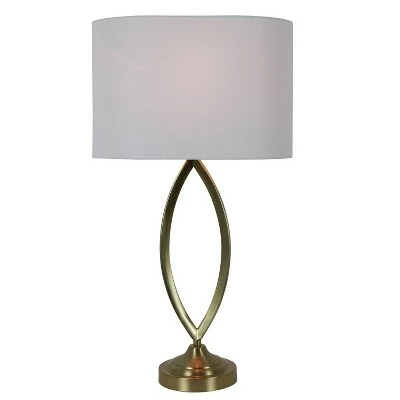 Add a sculptural element to your side table with our Sculpted Metal Table Lamp. This sleek, modern crafted lamp comes in multiple finishes and features an open design for a look that will keep your side table looking open and airy. A classic and polished finish is accented by a White Linen Oval hardback shade. Constructed of Steel. Required one (1) 100 watt bulb, not included. Measures 15x15x27.5″