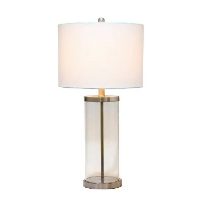 Classic yet contemporary this lamp will light up any room in your home with style! This lamp features a clear glass cylindrical base with brushed nickel metal on top and bottom for a clean, sophisticated look. Perfect for your living room, bedroom, office, or anywhere you need to add a tasteful update!