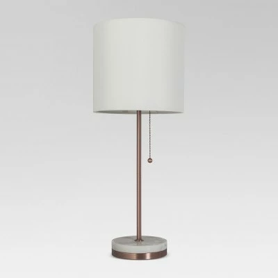 Beautifully illuminate your workspace with this Hayes Marble-Base Stick Lamp from Project 62™. The simple yet stylish construction gives it a classic charm, while the design of the marble base adds a touch of elegance. With a drum-shaped lampshade to soften the glow for an inviting feel, this nickel-finished desk lamp is perfect for use in your home office or as an accent in your living room.