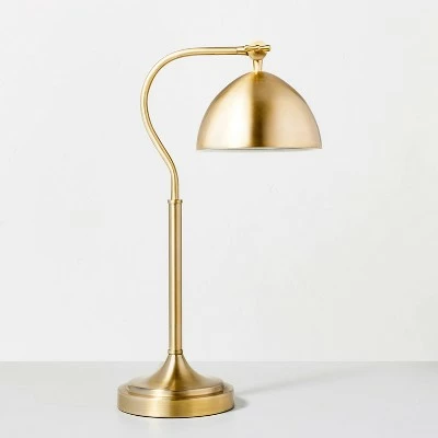 Light up your study table or office desk with this Metal Desk/Task Lamp from Hearth & Hand™ with Magnolia. This desk task lamp makes a wonderful addition to any desk or work area. It features a round pedestal base and a solid metal finish that’s easy to coordinate with any decor. The downward-facing, bowl-shaped shade can easily be adjusted in any direction to focus the light where you need it the most, while the one-way rocker switch makes it easy to turn on and off. Plus, it comes with one LED bulb for instant, energy-efficient use.