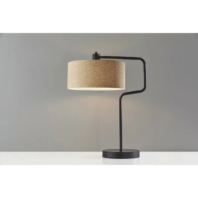 Clean lines and a modern, short drum shaped shade update the classic swing-arm style of the Jacob Table Lamp. A mix of bronze metals and natural materials add a farmhouse element. The light brown shade is woven from natural materials, revealing a unique and beautiful texture when lit. Swing the arm to focus light where you desire. Bulb is not included.