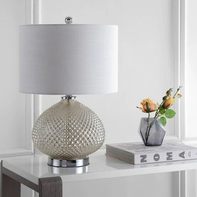 Bring casual elegance to a side table or nightstand with this beautiful mercury glass table lamp. Subtly glam and contemporary, this lamp boasts a textured mercury glass body with a softly curved silhouette. A clean shade ensures true and diffused illumination that’s perfect for creating ambiance and illuminating space in any room.
