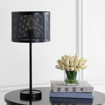Minimalism is all in the details – like this table lamp’s unique all-black finish and simple geometry. The Edison-style LED bulb is visible through a metal-screen drum shade, for warm, filtered light. This lamp’s low-key modern design will add contemporary flair to a living room, bedroom, office, den, or entry.