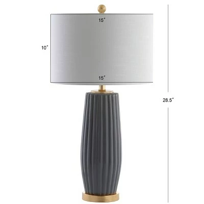 Add the finishing touch to any room in your home with this lovely fluted ceramic table lamp. Atop a brushed brass base, a solid coating of gray glaze gives this ribbed shape a high-gloss finish. Topped with a linen hardback drum shade and paired with brass fittings, the style extends all the way to the plus with a silk-wrapped cord.