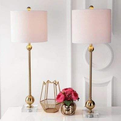 In the 1960s, when details on the space race headlined the cover of every magazine and the Russian’s sputnik satellite inspired a whole movement in futuristic home dĂ©cor, rod and ball construction really had a moment. We’ve revived the best of that construction and plated it in a modern brass finish so that it simultaneously harkens the past and beckons to the future. Situated atop a clear base, the combination of metal and crystal paired with a cotton drum shade make for a versatile piece that will last for decades to come.