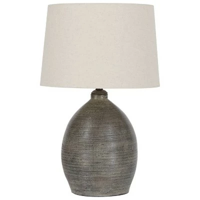 Set the scene for earthy elegance with this table lamp with terracotta base. Whether your decor is modern or eclectic, what a complement to your bedroom, living room or office. Distressed gray finished terracotta table lamp. Modified drum hardback shade. 3-way switch. (1) E26 socket, type A bulb recommended – 150 watts max or 25 watts max CFL. Due to the hand crafted nature of this product, some variations may occur. Signature Design by Ashley is a registered trademark of Ashley Furniture Industries, Inc.