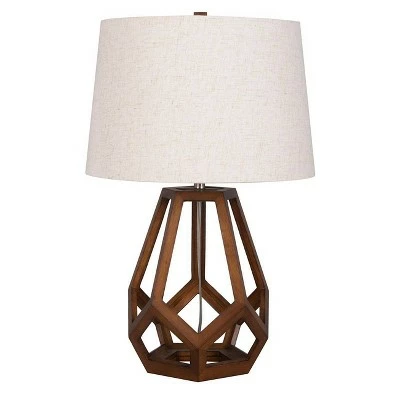 Add a modern spin to your lighting with the Large Wood Geo Assembled Table Lamp from Threshold™. An open geometrical frame accents the brown wooden base of this large freestanding table lamp for eye-catching style, and it’s topped with a textured fabric drum shade for evenly distributing the light in your space. Standing at a height of 23.5 inches, this decorative table lamp adds beautiful natural elegance and charm to anywhere in your house, from next to a comfortable sofa or lounge chair in your living room to your reading nook and more.
