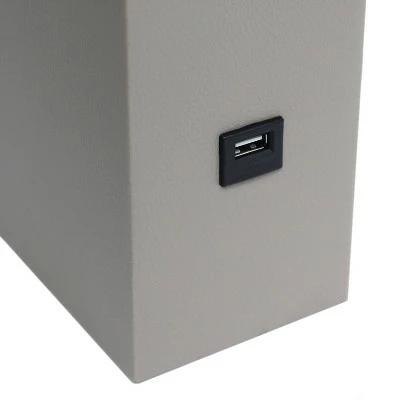 This simple yet modernized table lamp showcasing a leather body and white fabric shade is the perfect addition to your lighting needs. With a USB port on the side of the base, you are able to conveniently plug and/or charge your device. Our products are designed to enhance your room with elegance and sophistication.